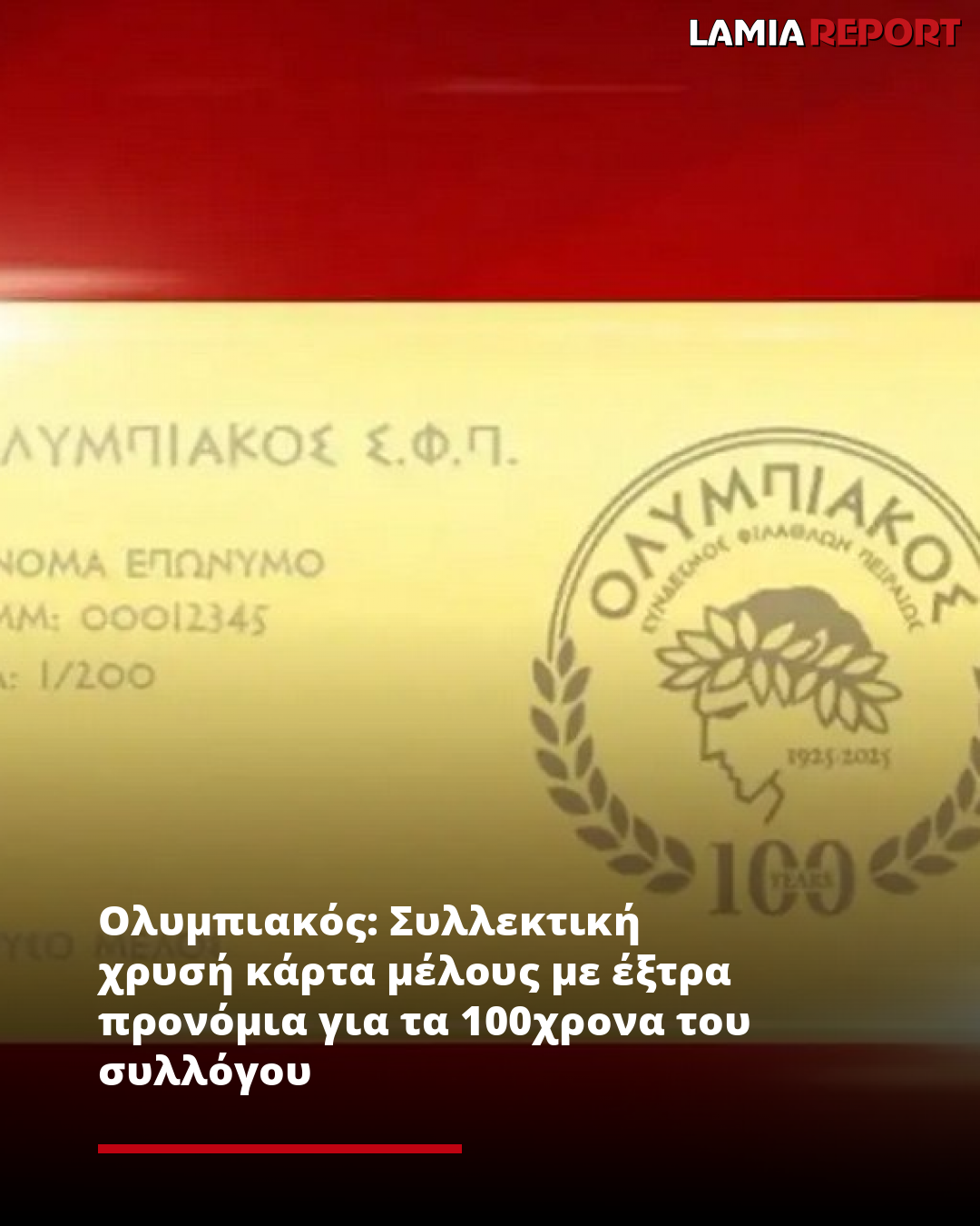 Ο Ολυμπιακός συμπλήρωσε 100 χρόνια ζωής το 2025 και στο πλαίσιο αυτό δημιούργησε και μία συλλεκτική χρυσή κάρτα μέλους για τους οπαδούς του, η οποία και συνοδεύεται από μία σειρά από προνόμια για όσους την αποκτήσουν.