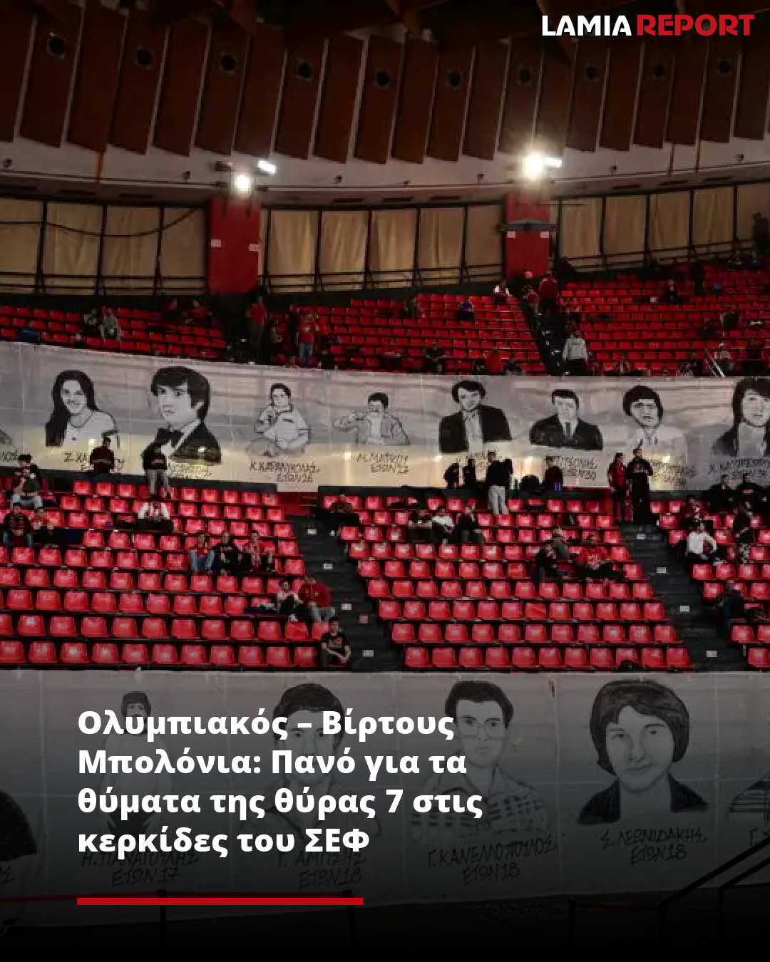 Ο Ολυμπιακός υποδέχεται τη Βίρτους Μπολόνια στο ΣΕΦ για την 27η αγωνιστική της Euroleague (06/02/26, 21:15, Novasports Prime) και οι φίλοι των ερυθρολεύκων ύψωσαν πανό στη μνήμη των 21 θυμάτων της θύρας 7.
