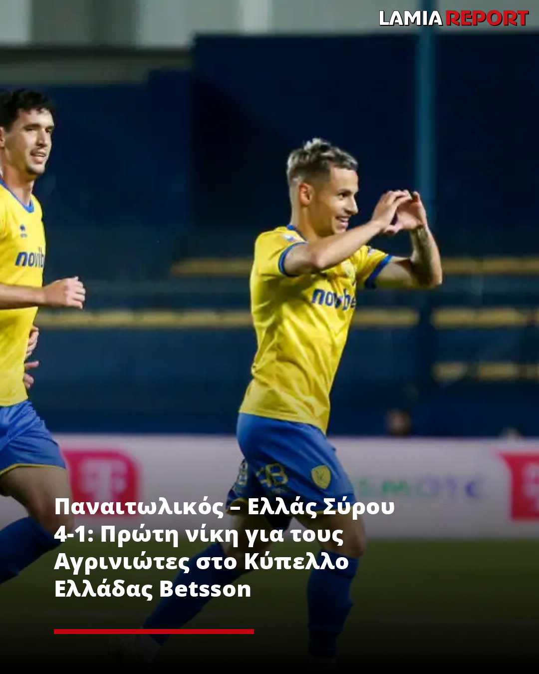 Ο Παναιτωλικός πήρε από νωρίς το προβάδισμα κόντρα στην Ελλάς Σύρου και αποδείχθηκε πιο ικανός στην τελική προσπάθεια, με αποτέλεσμα να πετύχει τέσσερα γκολ και να πανηγυρίσει την πρώτη του νίκη και τους πρώτους του βαθμούς στο Κύπελλο Ελλάδας Betsson, στην τρίτη αγωνιστική της League Phase.