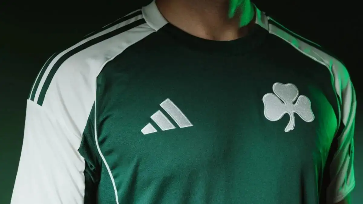Το κλασικό πράσινο χρώμα κυριαρχεί, με διακριτικές λευκές λεπτομέρειες που τιμούν τη διαχρονική ταυτότητα του τριφυλλιού. Στο στήθος δεσπόζει το εμβληματικό λευκό τριφύλλι, κεντημένο με λεπτομέρεια και κατασκευασμένο από ανακυκλώσιμα υλικά, αναδεικνύοντας τη δέσμευση του συλλόγου για βιωσιμότητα και σεβασμό προς το περιβάλλον.