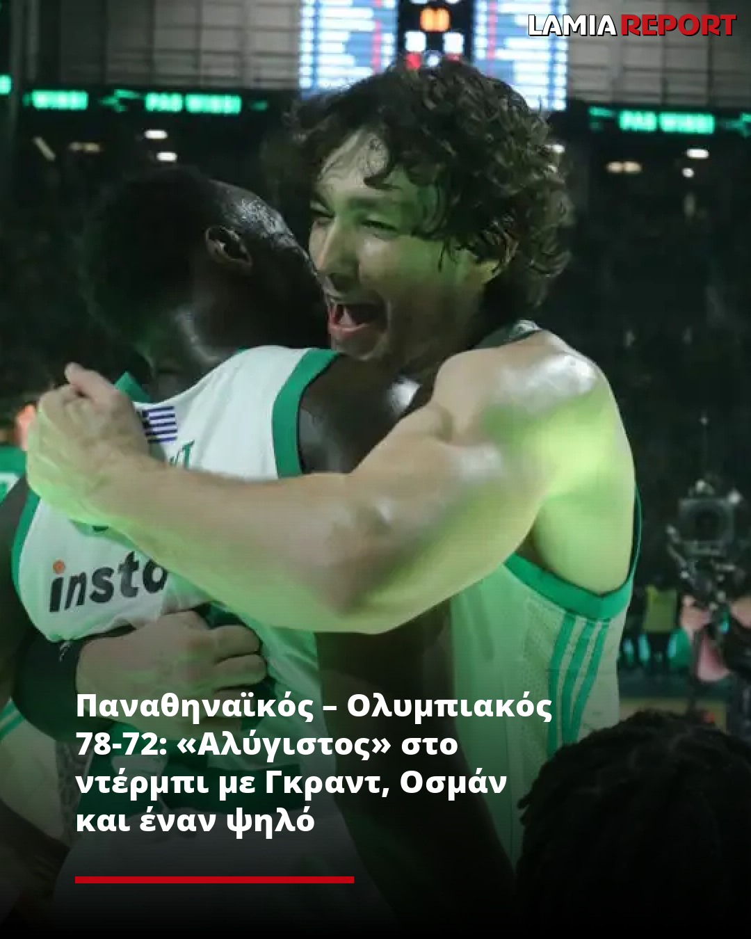 Ο Παναθηναϊκός των… χιλίων προβλημάτων «γονάτισε» τον φορμαρισμένο Ολυμπιακό μέσα στο ΟΑΚΑ (78-72) -με μεγάλους πρωταγωνιστές τους Γκραντ και Οσμάν- και έκανε το 2/2 στα ντέρμπι «αιωνίων» στην Greek Basketball League, κάτι που του δίνει τεράστιο προβάδισμα για να έχει το απόλυτο πλεονέκτημα έδρας μέχρι τους τελικούς. Αποχώρησε τραυματίας ο Γιούρτσεβεν.