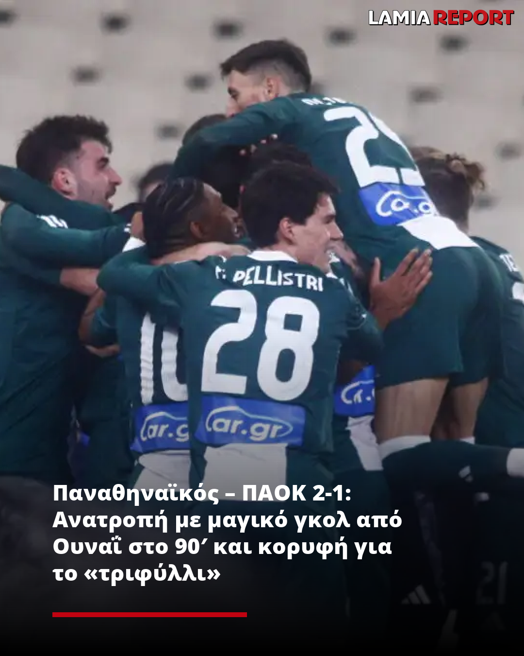 Παναθηναϊκός – ΠΑΟΚ 2-1: Ανατροπή με μαγικό γκολ από Ουναΐ στο 90′ και κορυφή για το «τριφύλλι»