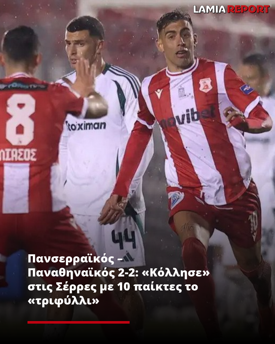 Πανσερραϊκός – Παναθηναϊκός 2-2: «Κόλλησε» στις Σέρρες με 10 παίκτες το «τριφύλλι»