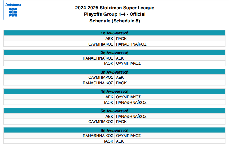 Δείτε το πλήρες πρόγραμμα των πλέι-οφ:
