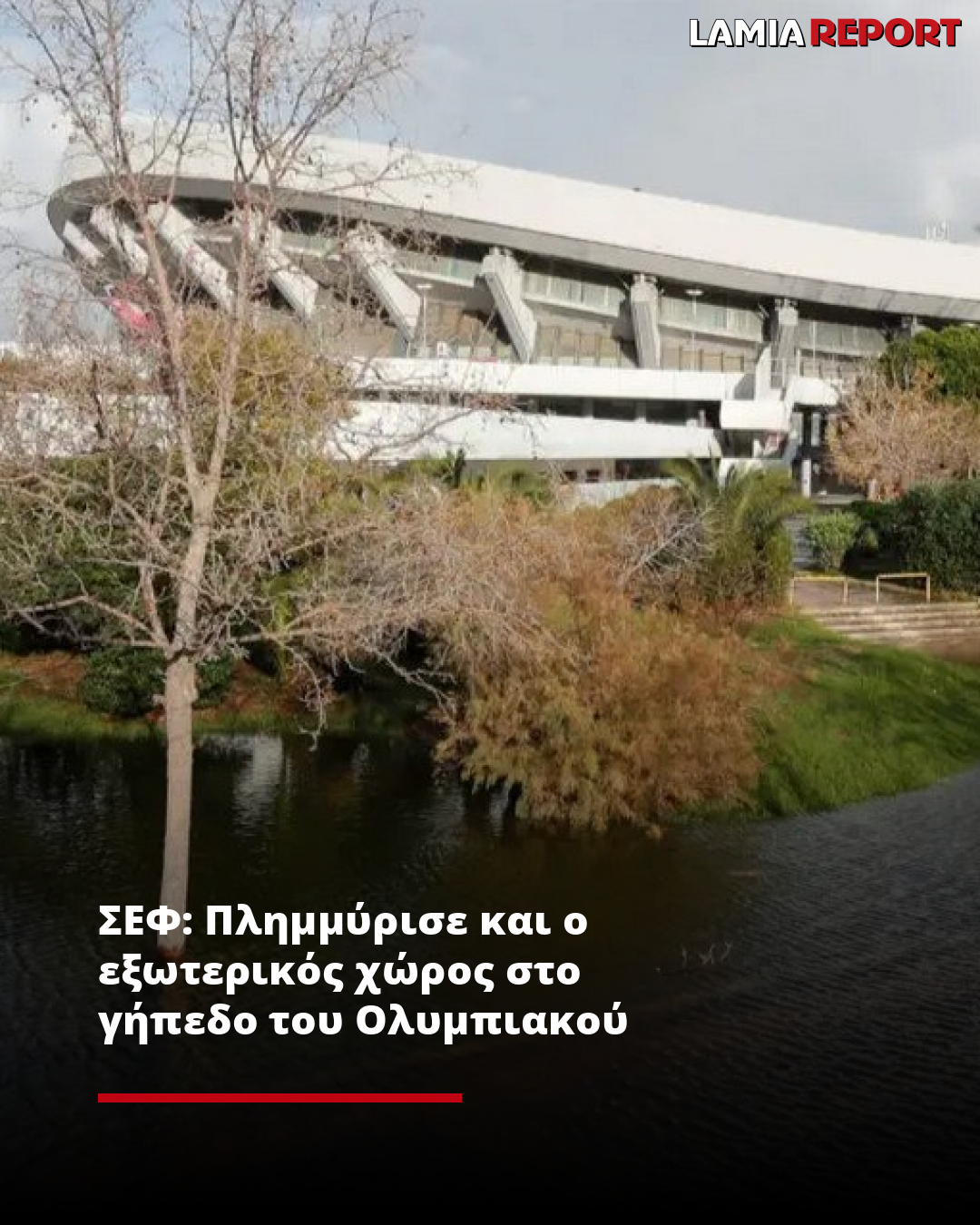 Αξίζει να σημειωθεί πως από τεράστιες ποσότητες νερού έχουν συσσωρευτεί και στον περιβάλλοντα χώρο του γηπέδου, με το τοπίο να θυμίζει κυριολεκτικά λίμνη, σε μια εικόνα εντελώς ασυνήθιστη.