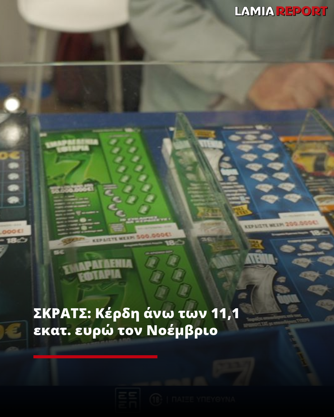 Κέρδη άνω των 11,1 εκατ. ευρώ μοίρασε το ΣΚΡΑΤΣ τον Νοέμβριο. Συγκεκριμένα, τον περασμένο μήνα τα συνολικά κέρδη του παιχνιδιού ανήλθαν σε 11.127.503 ευρώ.