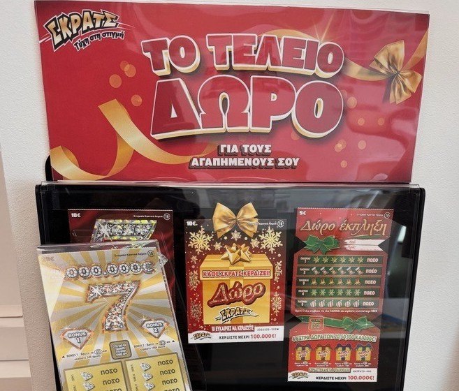 «Το παιχνίδι «ΔΩΡΟ ΣΚΡΑΤΣ» κοστίζει 10 ευρώ, με το μέγιστο έπαθλο που μπορεί να διεκδικήσει κάποιος να ανέρχεται σε 100.000 ευρώ. Κάθε λαχνός κερδίζει τουλάχιστον 4 ευρώ, ενώ διαθέτει ειδική περιοχή για ευχές και 3 περιοχές bonus. Το ΣΚΡΑΤΣ «ΔΩΡΟ ΕΚΠΛΗΞΗ» κοστίζει 5 ευρώ, μοιράζει μέχρι και 100.000 ευρώ, ενώ οι παίκτες έχουν 9 ευκαιρίες για κέρδη», συμπληρώνει.