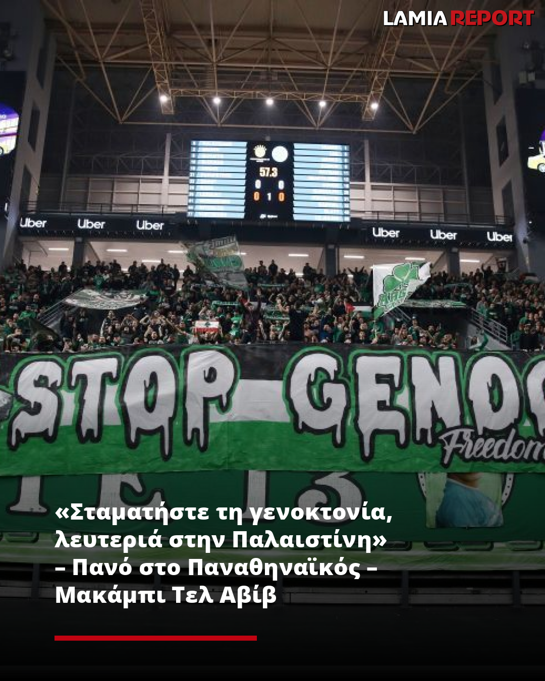 «Σταματήστε τη γενοκτονία, λευτεριά στην Παλαιστίνη» – Πανό στο Παναθηναϊκός – Μακάμπι Τελ Αβίβ
