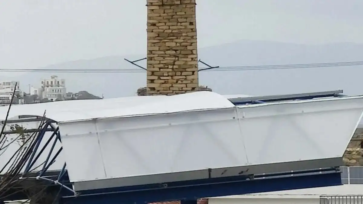 Σύρος: Αποκολλήθηκε μέρος του στεγάστρου στο γήπεδο της Ερμούπολης από τον δυνατό αέρα