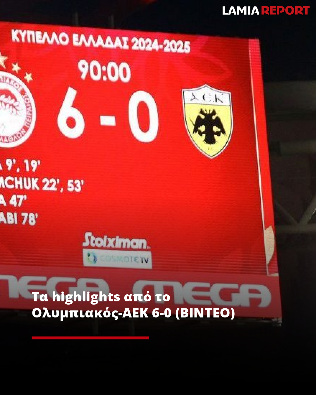 Τα highlights από το Ολυμπιακός-ΑΕΚ 6-0 (ΒΙΝΤΕΟ)