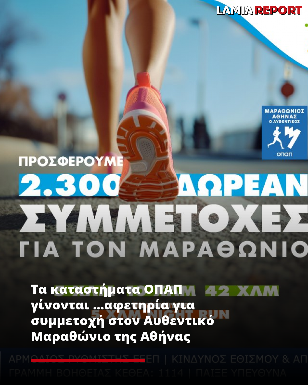 Ο ΟΠΑΠ, Μέγας Χορηγός του Αυθεντικού Μαραθωνίου της Αθήνας, προσφέρει δωρεάν 2.300 συμμετοχές για τον Μαραθώνιο Δρόμο των 42.195 μέτρων, τις διαδρομές των 5 και 10 χιλιομέτρων, καθώς και για τον αγώνα 5 χλμ. Universities Night Run.