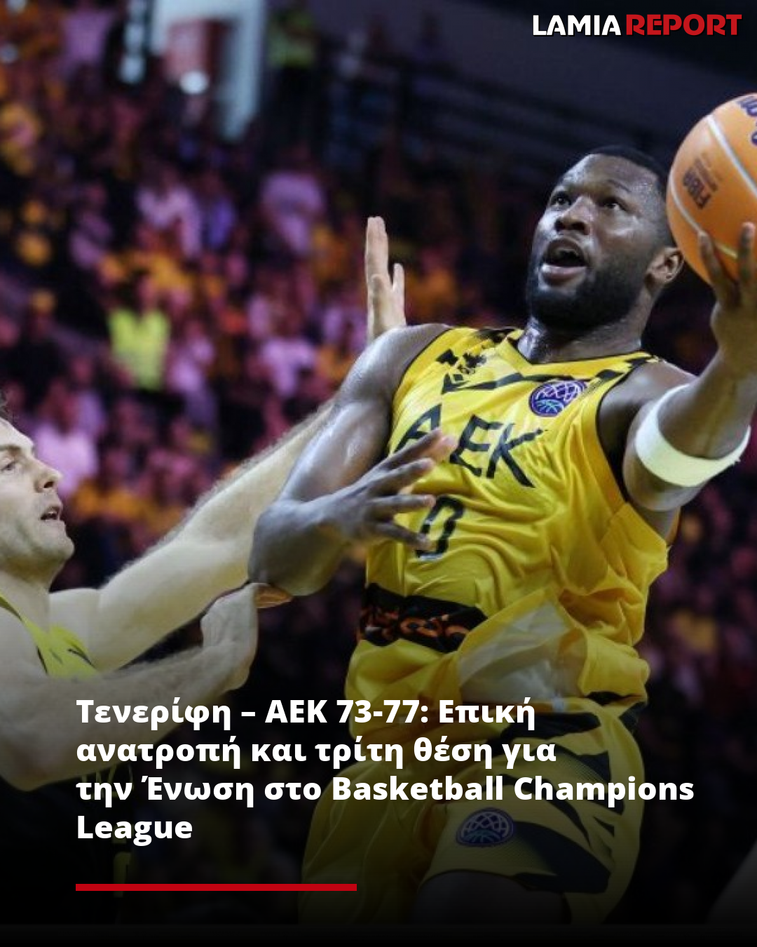 Τι κι αν βρέθηκε με διψήφιες διαφορές πίσω στο σκορ, η ΑΕΚ έκανε κατάθεση ψυχής κόντρα στην Τενερίφη στον μικρό τελικό του Final Four του Basketball Champions League και επικράτησε της ισχυρής ισπανικής ομάδας με 77-73, κατακτώντας την τρίτη θέση.