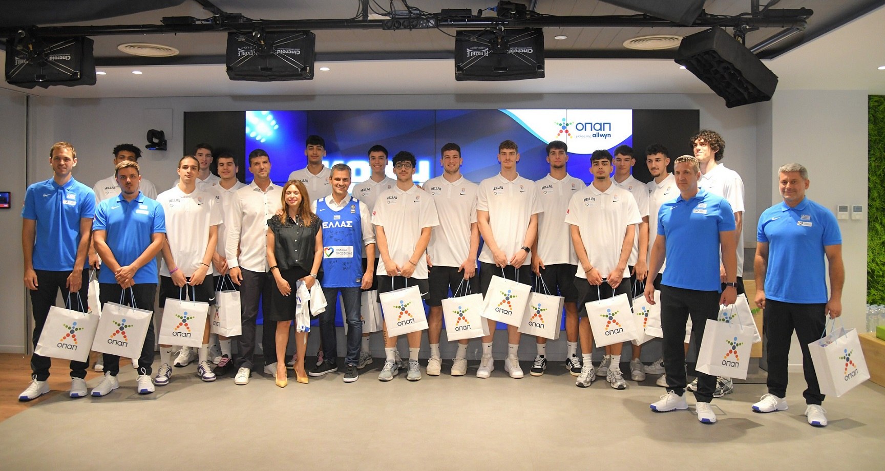Οι παίκτες της Εθνικής Ομάδας Μπάσκετ Νέων Ανδρών στα γραφεία του ΟΠΑΠ