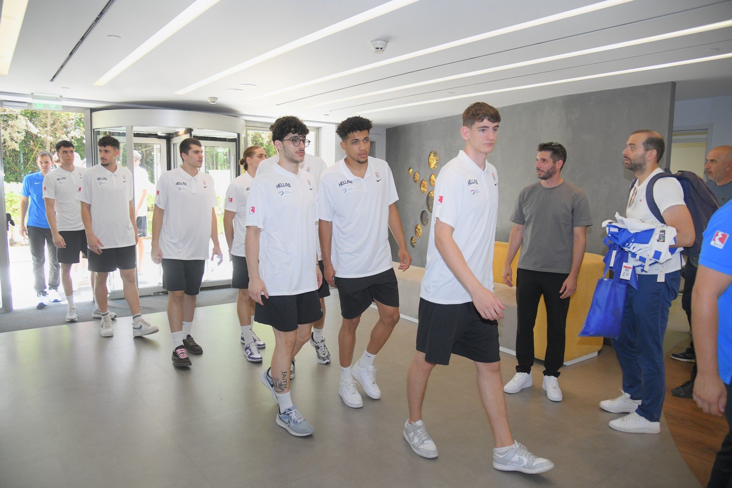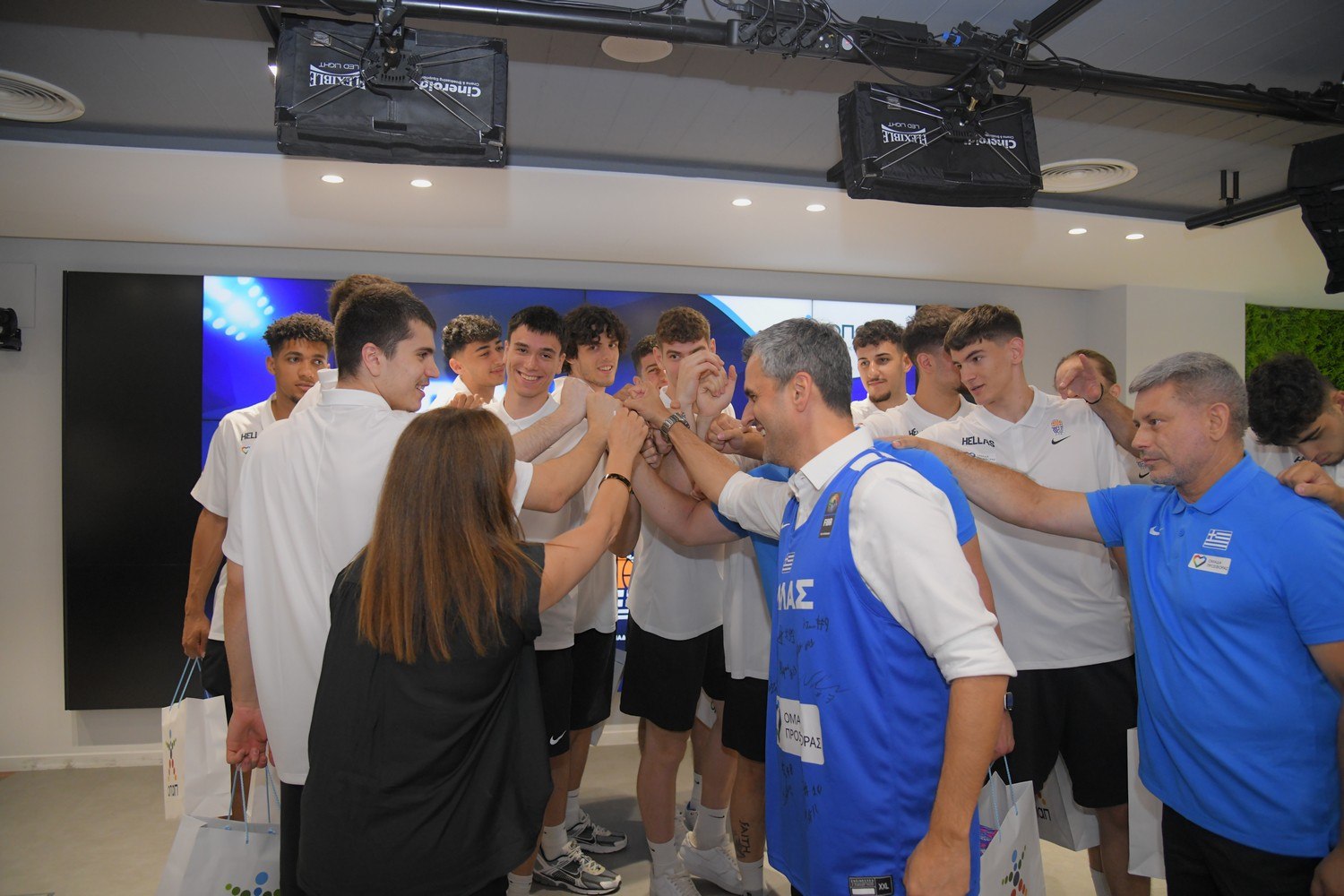 Αποθεωτική υποδοχή επεφύλασσαν οι εργαζόμενοι του ΟΠΑΠ στα μέλη της Εθνικής Ομάδας Μπάσκετ U20 και τους ευχήθηκαν καλή επιτυχία στην προσπάθειά τους για διάκριση στο Ευρωπαϊκό Πρωτάθλημα Μπάσκετ Νέων Ανδρών.