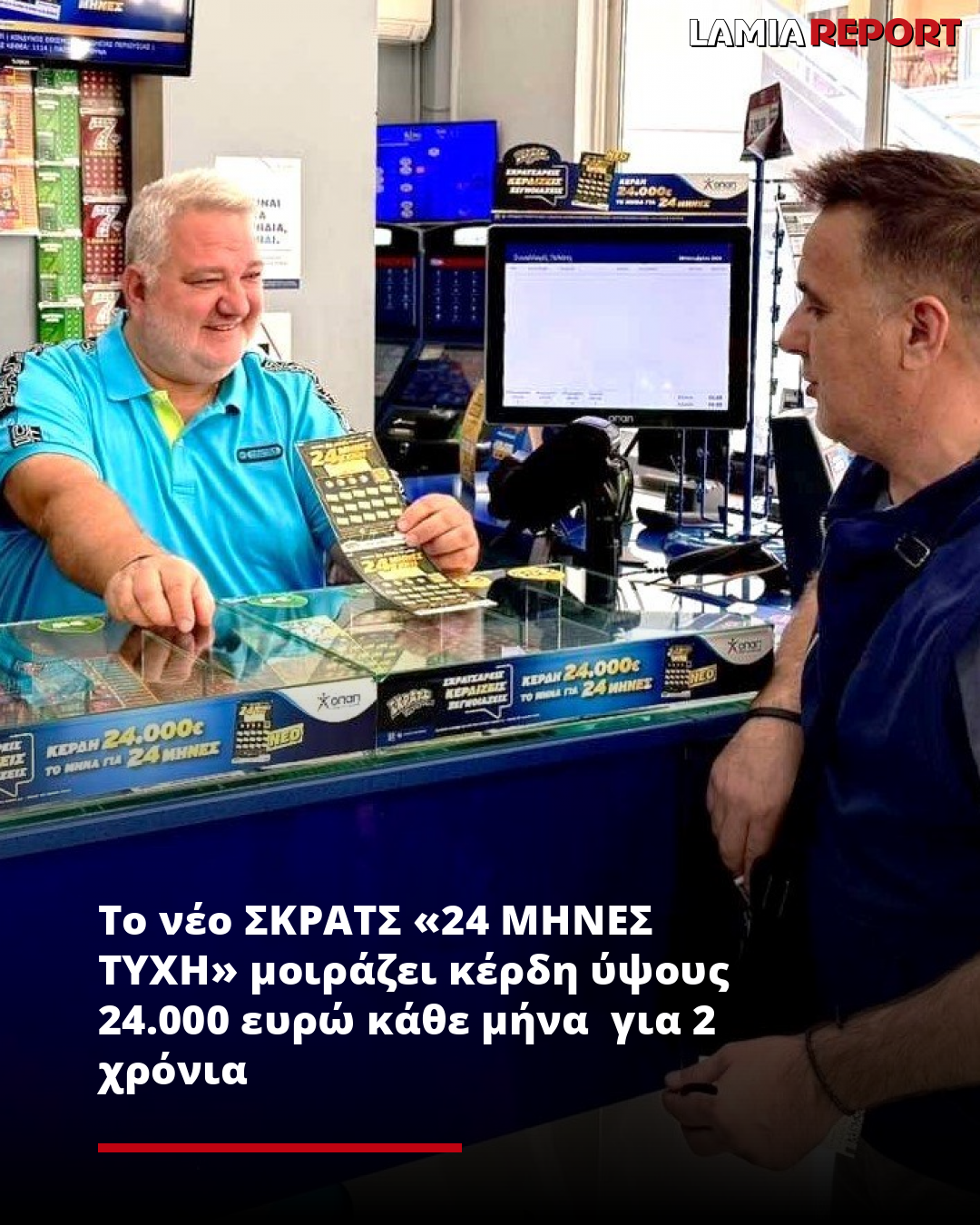 Πρόκειται για το παιχνίδι «24 ΜΗΝΕΣ ΤΥΧΗ», που μοιράζει μέχρι και 24.000 ευρώ κάθε μήνα για 2 ολόκληρα χρόνια. Παράλληλα, οι παίκτες του νέου ΣΚΡΑΤΣ διεκδικούν και έπαθλα 1.000 ευρώ το μήνα για 24 μήνες.