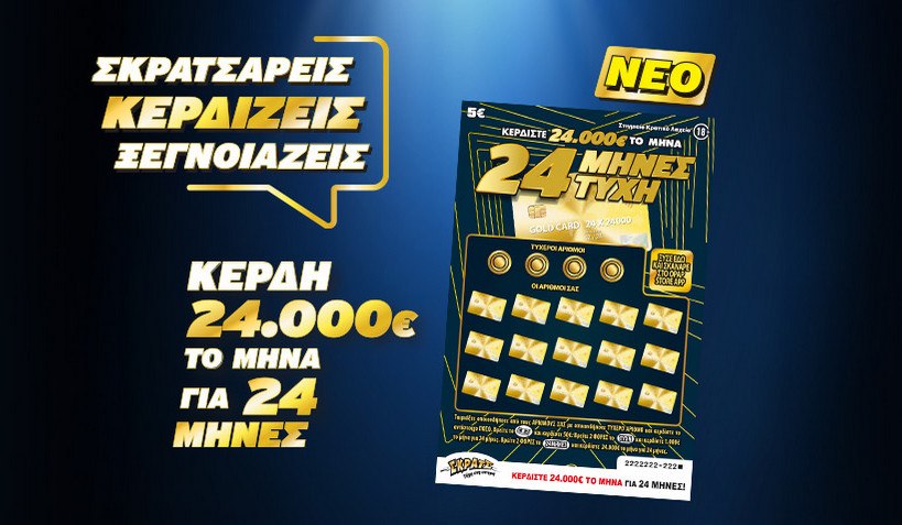 Το νέο ΣΚΡΑΤΣ «24 ΜΗΝΕΣ ΤΥΧΗ» μοιράζει κέρδη ύψους 24.000 ευρώ κάθε μήνα για 2 χρόνια