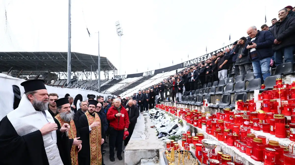 Τραγωδία ΠΑΟΚ: Κλίμα οδύνης στην Τούμπα, τελέστηκε επιμνημόσυνη δέηση εντός γηπέδου για τους αδικοχαμένους οπαδούς