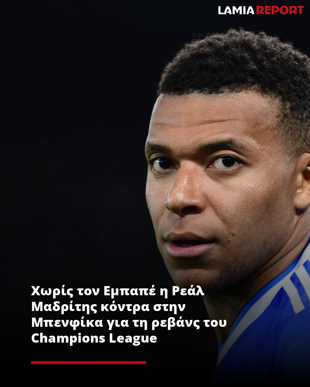 Η Ρεάλ Μαδρίτης υποδέχεται την Μπενφίκα του Βαγγέλη Παυλίδη (25/02/26, 22:00) και ο Κιλιάν Εμπαπέ, εκτός συγκλονιστικού απροόπτου, θα απουσιάζει από την αναμέτρηση που θα κρίνει μία θέση στους 16 του Champions League.