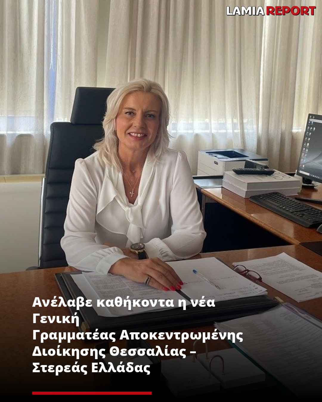 Στο Διοικητήριο της Αποκεντρωμένης Διοίκησης Θεσσαλίας – Στερεάς Ελλάδας βρέθηκε από τα τέλη της προηγούμενης εβδομάδας , μετά τη δημοσίευση του σχετικού ΦΕΚ διορισμού της, η νέα Γενική Γραμματέας, Ρένα Καραλαριώτου.