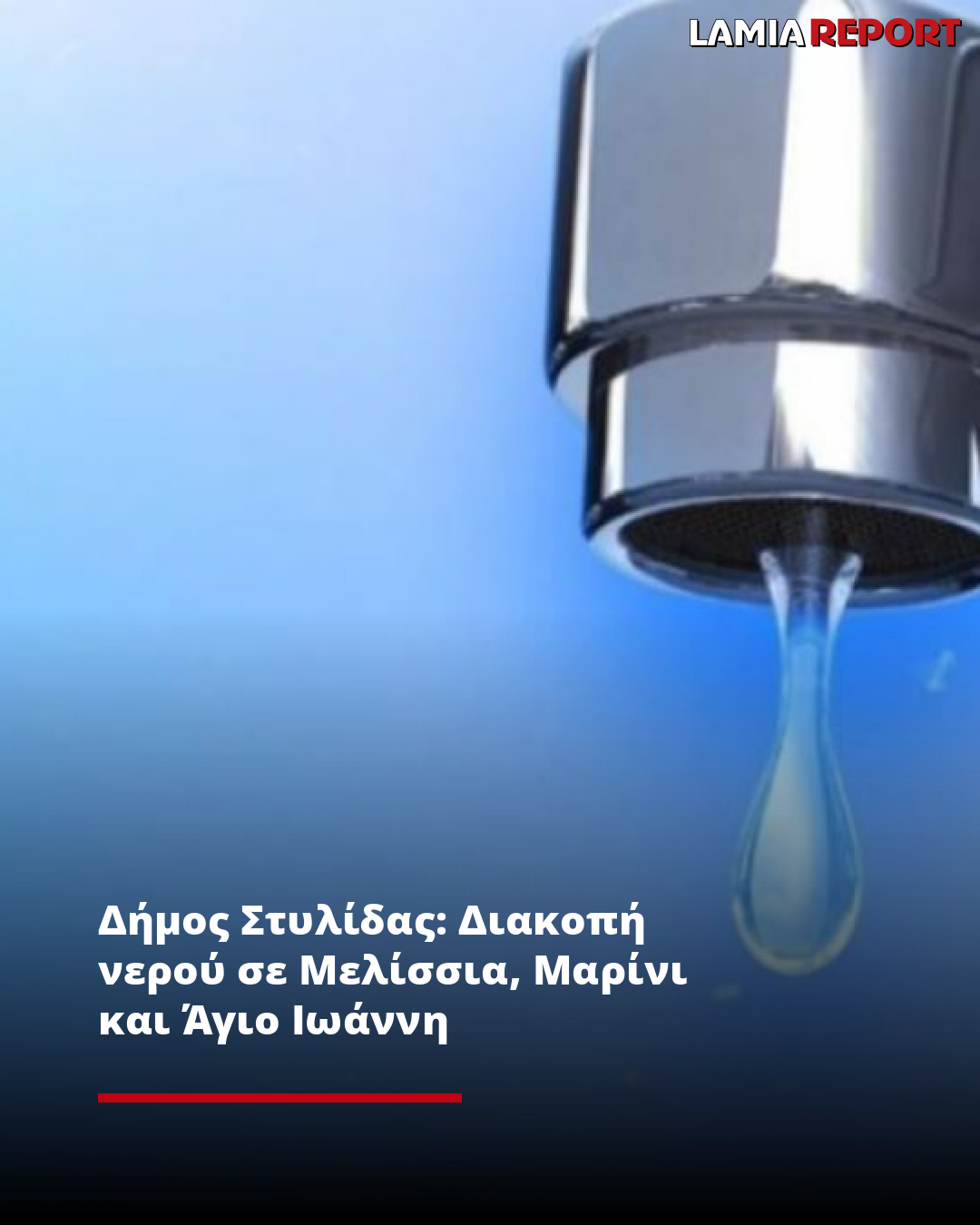 Σύμφωνα με ενημέρωση του Δήμου Στυλίδας, σήμερα, Παρασκευή 18/07/2025, λόγω σοβαρής βλάβης στον κεντρικό αγωγό ύδρευσης που υδροδοτεί τους οικισμούς Μελίσσια, Μαρίνι και Άγιο Ιωάννη θα υπάρξει διακοπή υδροδότησης έως την αποκατάσταση της βλάβης.