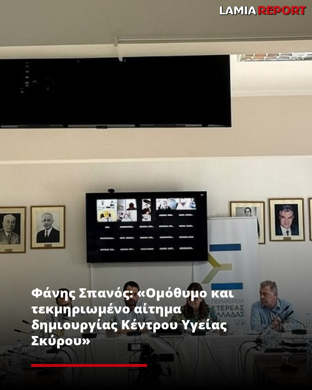 «Συνεδριάσαμε στην Σκύρο και με τη μέγιστη δυνατή συσπείρωση διατυπώσαμε το ομόθυμο και απολύτως τεκμηριωμένο αίτημα αναβάθμισης του Πολυδύναμου Περιφερειακού Ιατρείου σε Κέντρο Υγείας με πλήρη στελέχωση και 24ωρη λειτουργία. Είναι ζήτημα ζωτικής σημασίας για τους μόνιμους κατοίκους και τους χιλιάδες επισκέπτες της Σκύρου, όπως είναι και βασική προϋπόθεση για την περαιτέρω τουριστική ανάπτυξη του νησιού», δήλωσε ο Περιφερειάρχης Στερεάς Ελλάδας Φάνης Σπανός και πρόσθεσε: