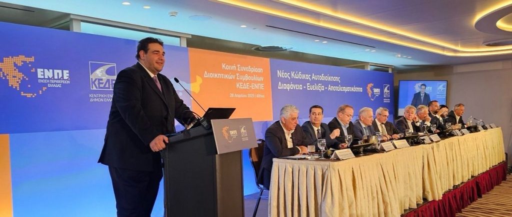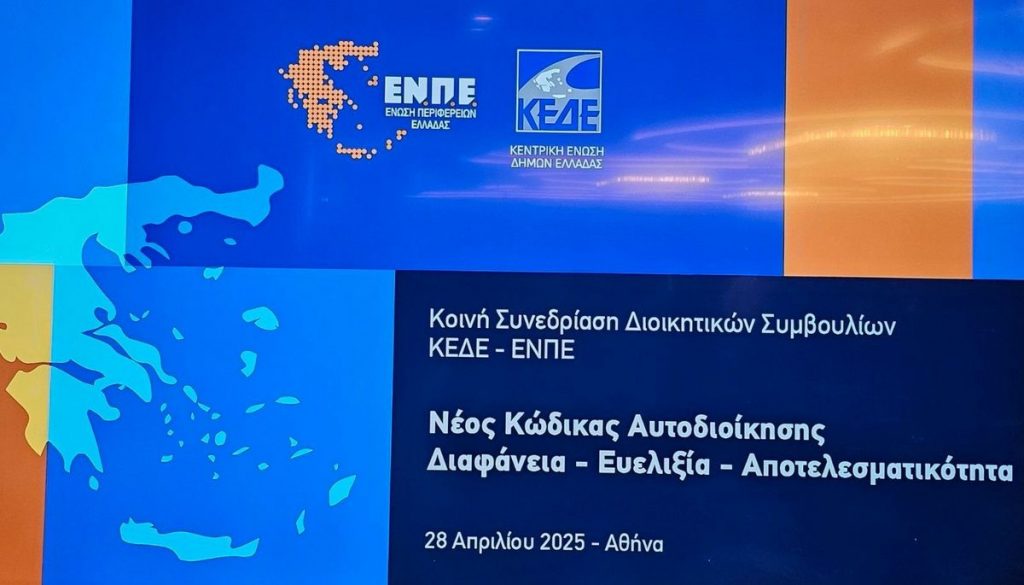 Ολοκληρώθηκε το μεσημέρι της Δευτέρας 28 Απριλίου 2025, στο ξενοδοχείο Caravel στην Αθήνα, η κοινή συνεδρίαση της Ένωσης Περιφερειών Ελλάδας (ΕΝ.Π.Ε.) & της Κεντρικής Ένωσης Δήμων Ελλάδας (Κ.Ε.Δ.Ε.) με θέμα τον «Νέο Κώδικα Αυτοδιοίκησης. Διαφάνεια - Ευελιξία - Αποτελεσματικότητα».
