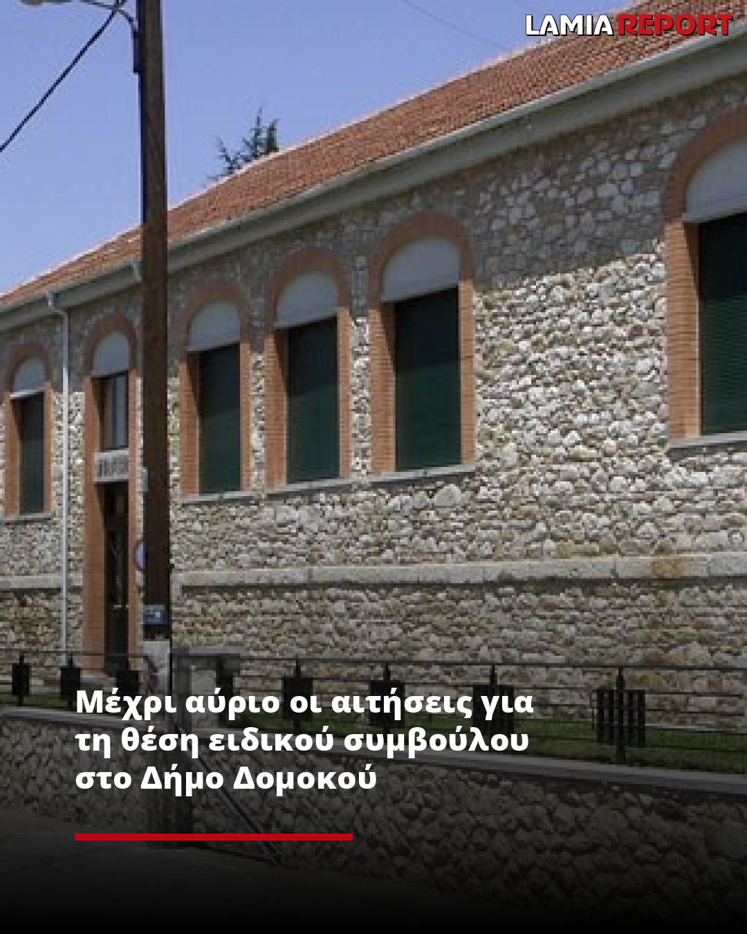 Μέχρι αύριο οι αιτήσεις για τη θέση ειδικού συμβούλου στο Δήμο Δομοκού