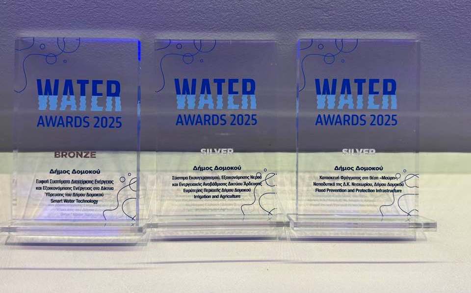 Με τρία βραβεία επέστρεψε από τα WATER AWARDS 2025 που πραγματοποιήθηκαν στην Αττική, ο Δήμος Δομοκού.