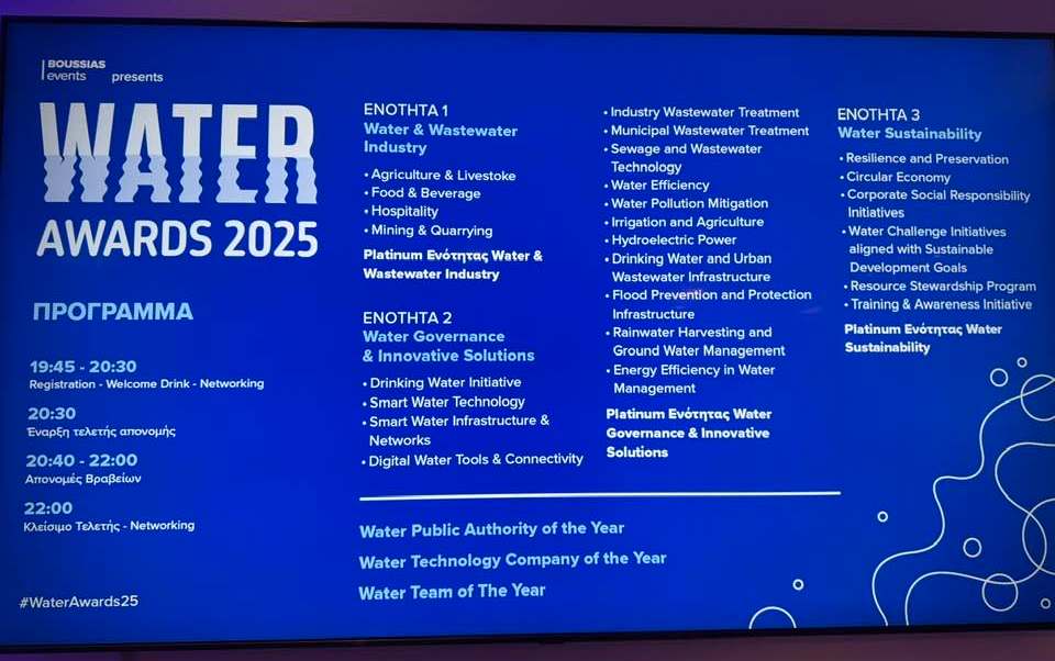 Η συμμετοχή του δήμου στον Πανελλήνιο διαγωνισμό “WATER AWARDS 2025” που θεσμοθετήθηκε για πρώτη φορά φέτος, έφεραν τρεις (3) σημαντικές διακρίσεις - βραβεία, για τις παρακάτω δράσεις:
