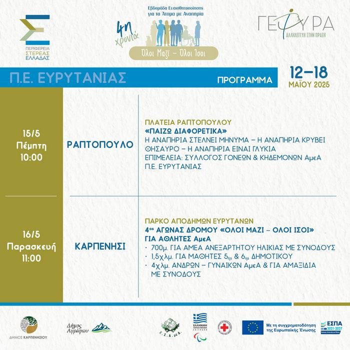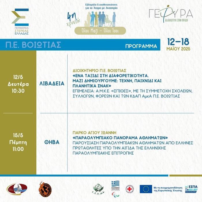 «Όλοι Μαζί – Όλοι Ίσοι»: 4η Εβδομάδα Ευαισθητοποίησης για Άτομα με Αναπηρία στην Περιφέρεια Στερεάς