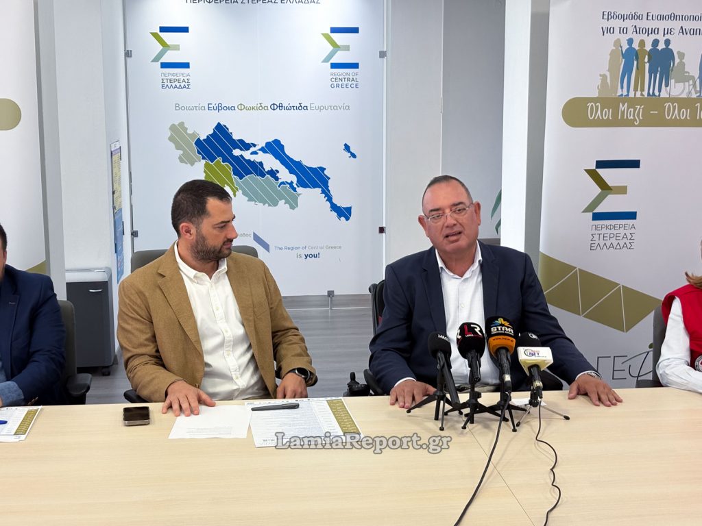 Συνέντευξη τύπου για το πρόγραμμα της «4ης Εβδομάδας Ευαισθητοποίησης για Άτομα με Αναπηρία», με σύνθημα: «Όλοι Μαζί – Όλοι Ίσοι», παραχώρησε σήμερα στην έδρα της Περιφέρειας Στερεάς Ελλάδας στη Λαμία, ο Περιφερειάρχης Φάνης Σπανός.