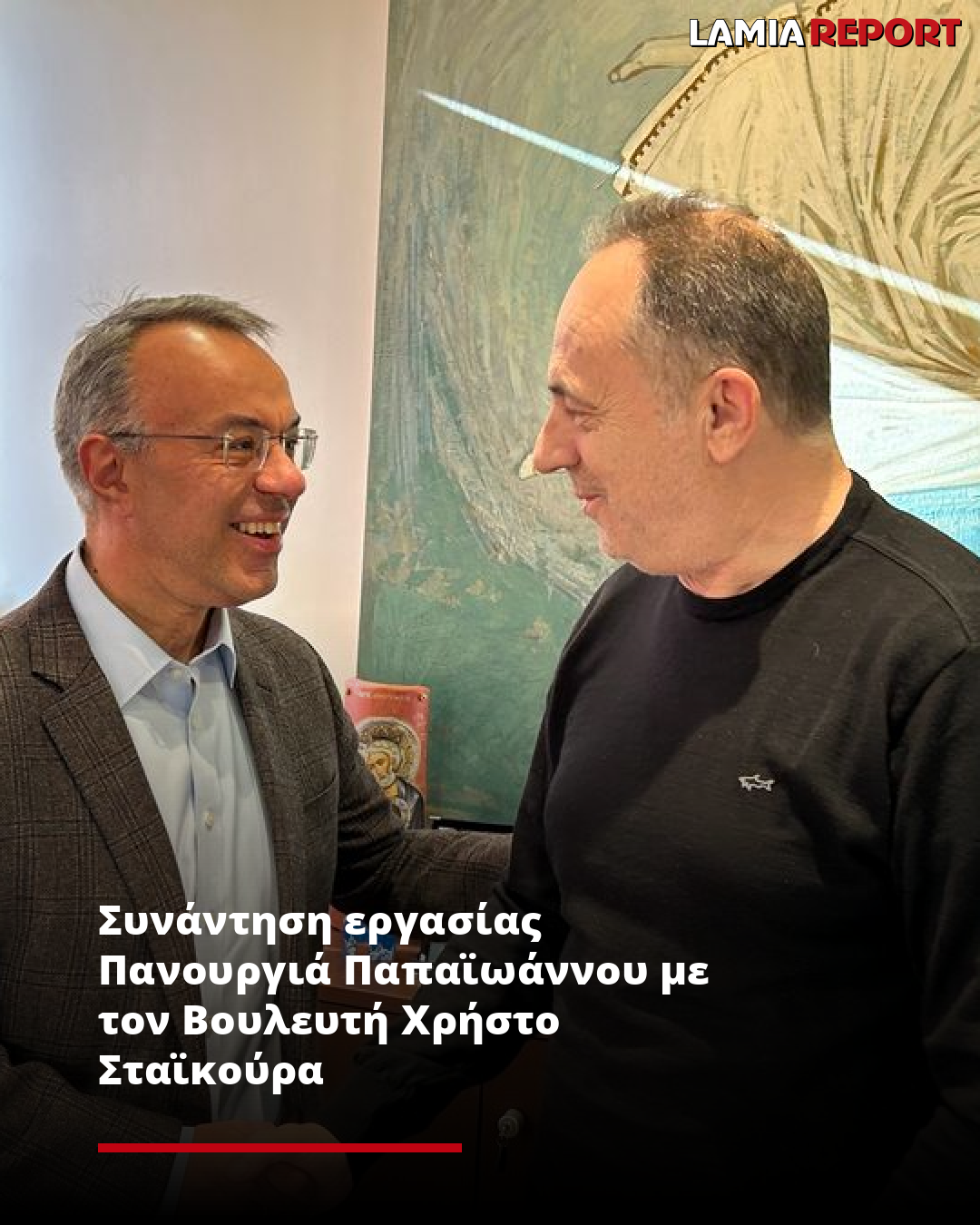 Ο Δήμαρχος Λαμιέων, Πανουργιάς Παπαϊωάννου, ανέφερε σχετικά: «Υποδεχθήκαμε σήμερα τον Βουλευτή Φθιώτιδας, Χρήστο Σταϊκούρα, για μια ουσιαστική και εποικοδομητική συζήτηση.