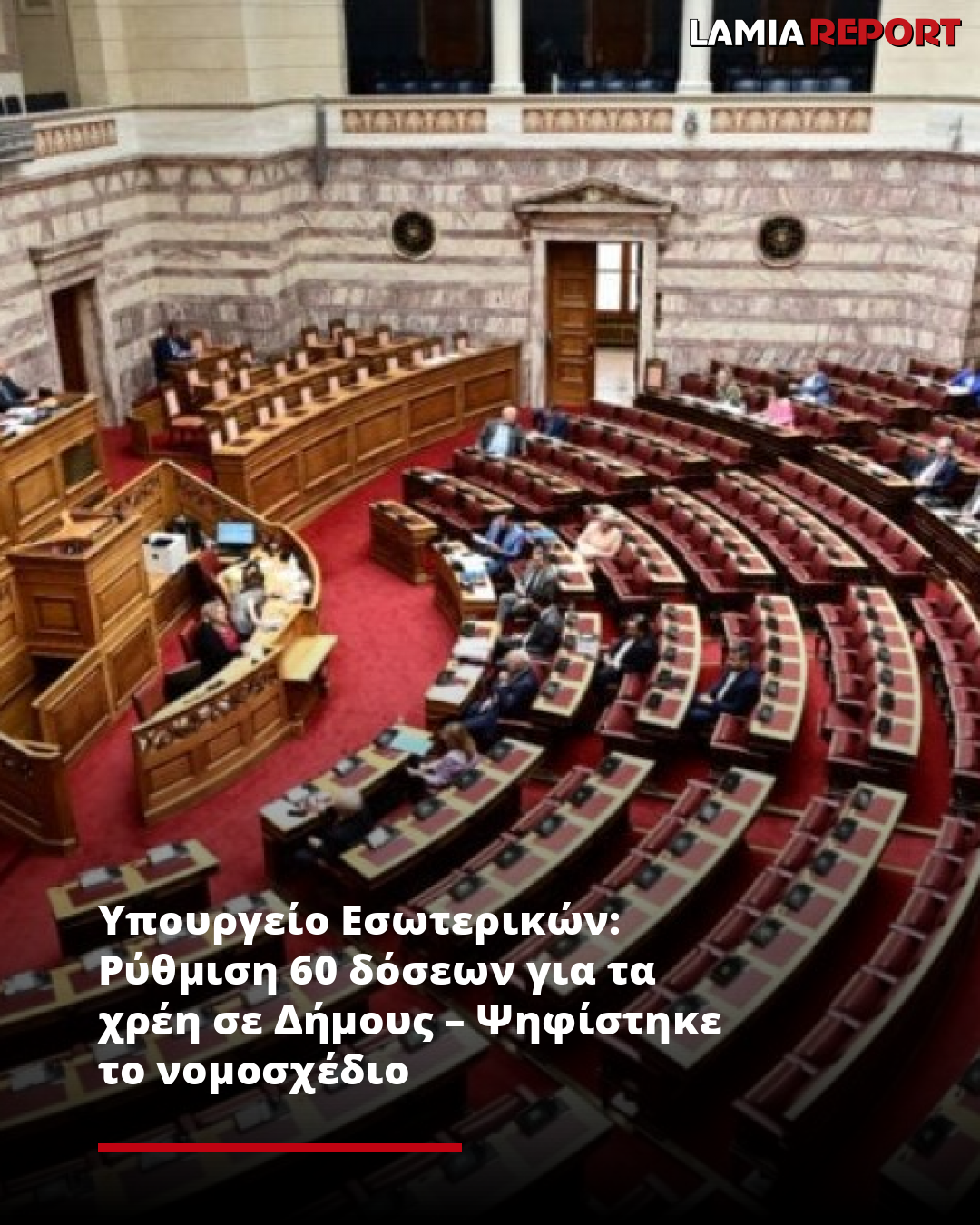 Υπουργείο Εσωτερικών: Ρύθμιση 60 δόσεων για τα χρέη σε Δήμους – Ψηφίστηκε το νομοσχέδιο