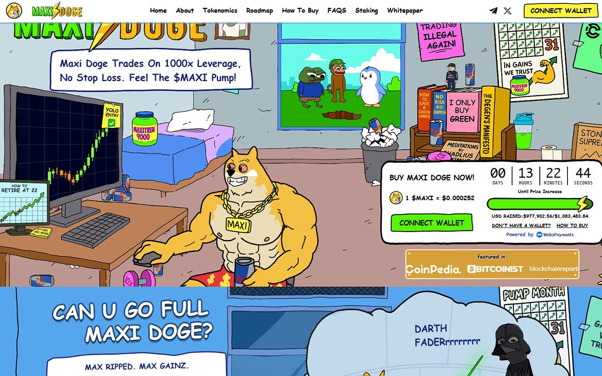 Το Maxi Doge ($MAXI) συνδυάζει το χιούμορ των meme coins με μια δυνατή κοινότητα. Έχει ήδη δημιουργήσει buzz στην αγορά χάρη στην «Proof of Workout» κουλτούρα του γύρω από το γυμναστήριο και την εστίαση στην ενεργή συμμετοχή των κατόχων.