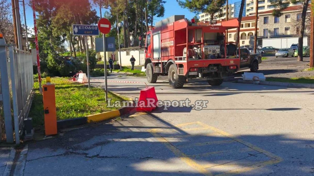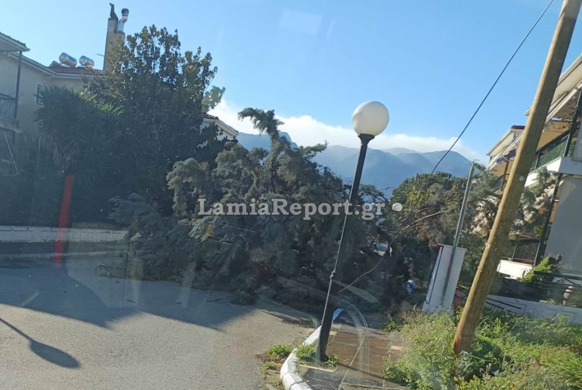Ένα μεγάλο πεύκο που βρισκόταν στη νότια πλευρά του περιβάλλοντα χώρου του νοσοκομείου Λαμίας, έπεσε από τον δυνατό αέρα πάνω σε παρκαρισμένα αυτοκίνητα, προκαλώντας ευτυχώς μόνο υλικές ζημιές.