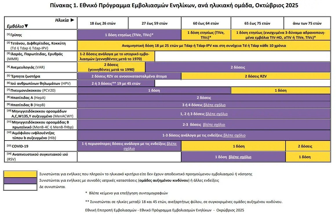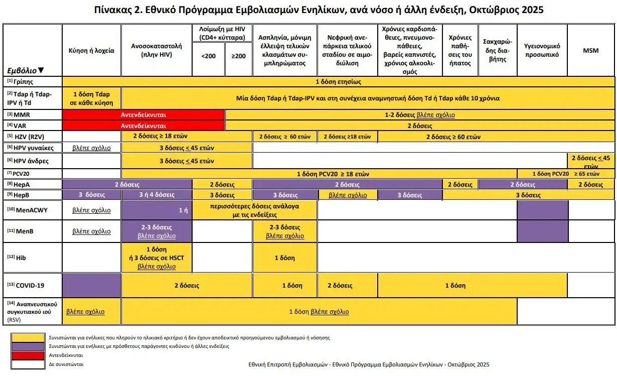 Οι αλλαγές αυτές αποτυπώνουν τη μετατόπιση του προγράμματος σε μια πιο “εξατομικευμένη” προσέγγιση εμβολιασμού, με βάση την ηλικία, τα υποκείμενα νοσήματα και την ανοσολογική κατάσταση κάθε ατόμου.