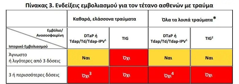 - τέτανο και διφθερίτιδα σε τραύμα,