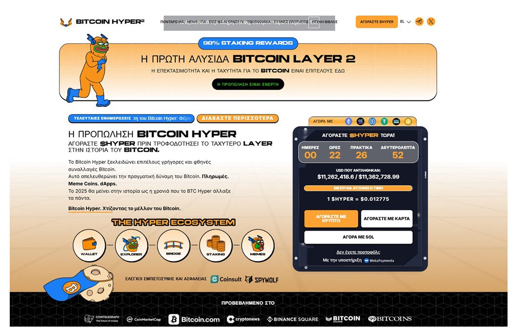 Μέσα σε αυτή την αβεβαιότητα, η αγορά παρακολουθεί και τις λύσεις που ενισχύουν το Bitcoin τεχνολογικά. Το Bitcoin Hyper ($HYPER), το πρώτο Layer-2 για το BTC με βάση το Solana Virtual Machine, έρχεται να αντιμετωπίσει τα βασικά προβλήματα του δικτύου, όπως οι αργές συναλλαγές και τα υψηλά κόστη. Με το $HYPER, οι χρήστες έχουν ταχύτητα, χαμηλές χρεώσεις και δυνατότητα για έξυπνα συμβόλαια και dApps πάνω στο Bitcoin. Σε περιόδους όπως η τρέχουσα, όπου η ρευστότητα και η εμπιστοσύνη δοκιμάζονται, νεότερα έργα όπως το Bitcoin Hyper τείνουν να προσελκύουν μεγαλύτερο επενδυτικό ενδιαφέρον, προσφέροντας περισσότερες προοπτικές κέρδους.