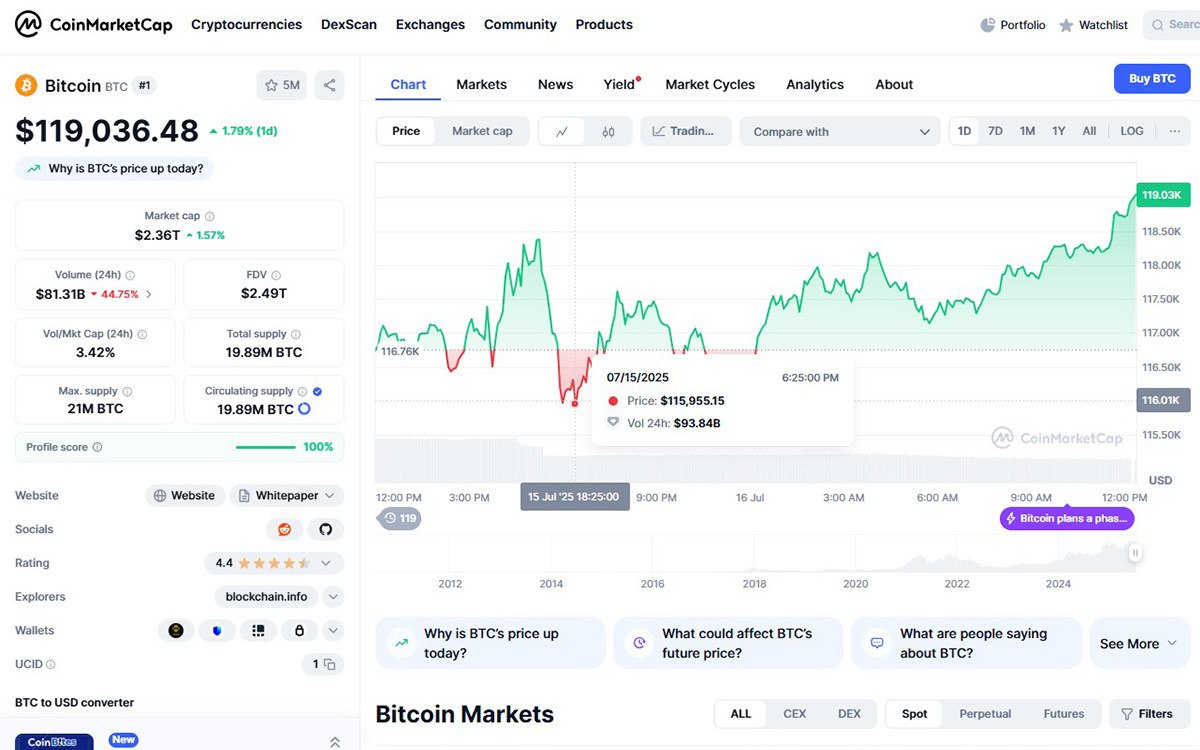Όπως σημείωσαν αναλυτές, η πτώση αυτή είναι τυπική σε περιόδους έντονης ανόδου και δεν ερμηνεύεται απαραίτητα ως αλλαγή στο επενδυτικό κλίμα. Αντιθέτως, χαρακτηρίζεται ως κλασικό μοτίβο breakout-pullback, με το Bitcoin να διατηρεί ανοδική δομή και τα επίπεδα στήριξης να εντοπίζονται στην περιοχή των 115.000$, φτάνοντας στο οποίο σημείωσε μια εκ νέου άνοδο στα 119.000$, όπου και βρίσκεται αυτή τη στιγμή.