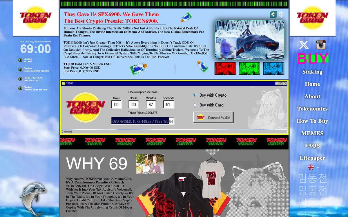 Το Token6900 ($T6900) ξεχωρίζει ως το απόλυτο meta-ironic meme coin του 2025. Χτισμένο στο Ethereum και εμπνευσμένο από τη σατιρική κουλτούρα του crypto Twitter, το $T6900 λειτουργεί ως κοινωνικό πείραμα γύρω από την παράνοια των meme coins. Δεν έχει roadmap, δεν υπόσχεται τίποτα, βασίζεται μόνο στα vibes και στην cult κοινότητα που το στηρίζει. Καθημερινά προσελκύει νέους υποστηρικτές, δημιουργώντας ένα ιδιόμορφο οικοσύστημα αυτοσαρκασμού, crypto trolling και ταυτόχρονα επενδυτικού ενδιαφέροντος.