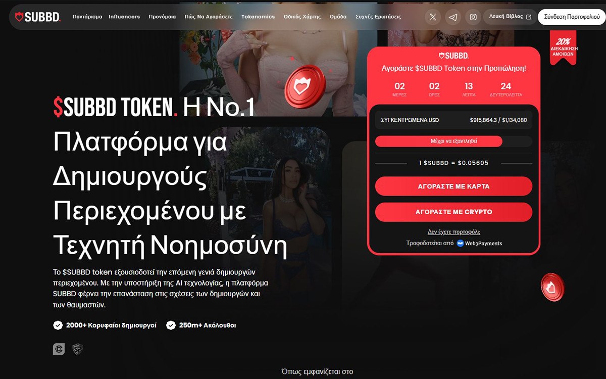 Το Subbd Token ($SUBBD) αρχίζει να βρίσκει θέση σε creators και κοινότητες που ψάχνουν νέους τρόπους αλληλεπίδρασης. Με χαμηλό κόστος εισόδου και διαρκείς ανταμοιβές για τους φανς, το Subbd κερδίζει σταδιακά ενδιαφέρον. Αν επιβεβαιωθούν οι φήμες για συνεργασίες με γνωστούς δημιουργούς περιεχομένου, ο Αύγουστος ίσως αποδειχθεί καθοριστικός για την τιμή του.