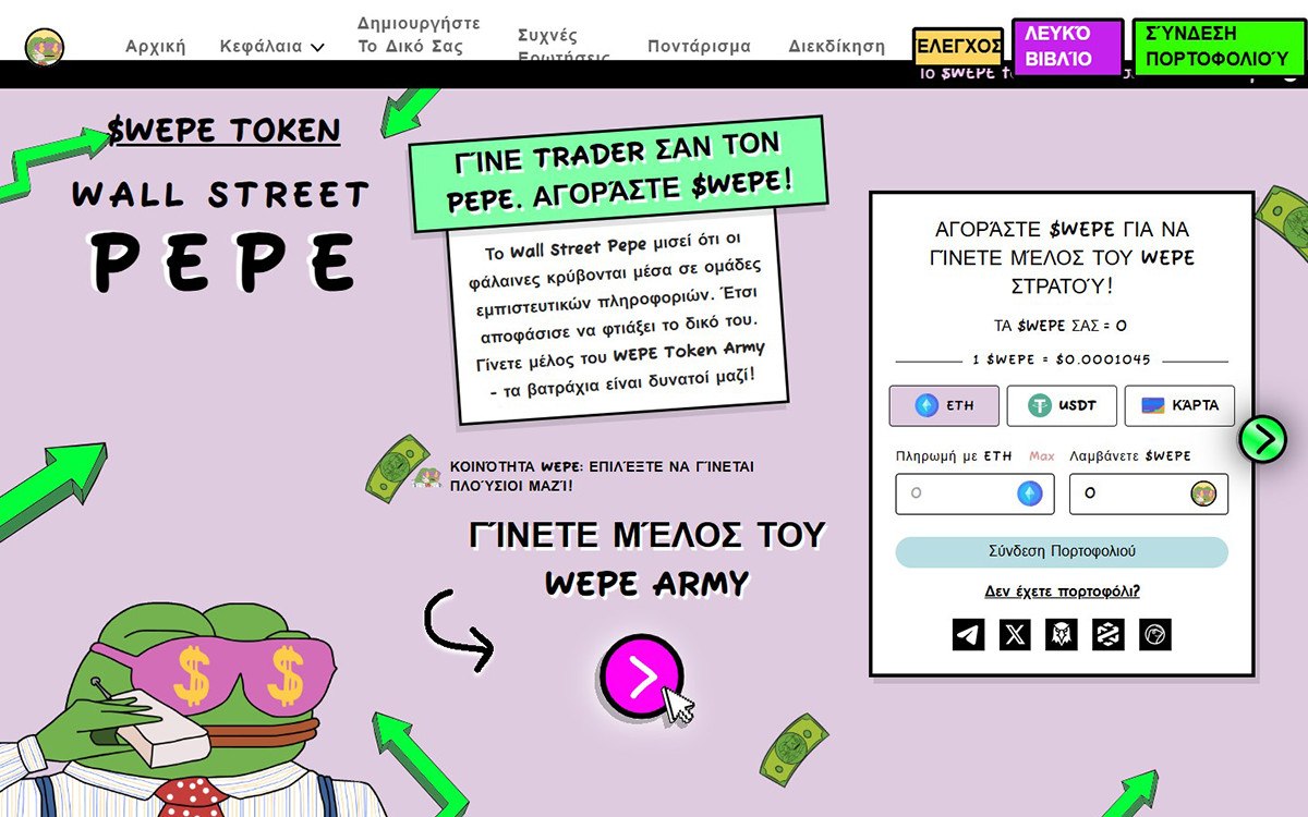 Το Wall Street Pepe ($WEPE) έχει ξεχωρίσει για την ικανότητά του να συνδυάζει το χιούμορ, μηχανισμούς burning και σημαντική ζήτηση. Η κοινότητα “WEPE Army” συνεχίζει να αυξάνεται, οδηγώντας σε αυξημένο όγκο συναλλαγών στα αποκεντρωμένα ανταλλακτήρια. Σε περιόδους όπου τα meme coins αναζητούν την επόμενη τρέλα, το WEPE έχει ήδη εδραιώσει τη δική του στον κόσμο των crypto.