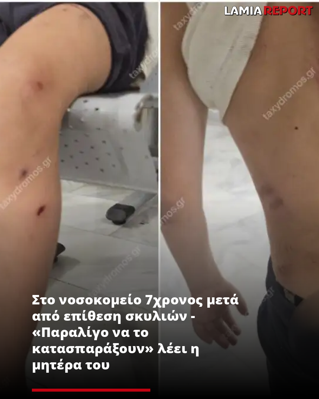 «Παραλίγο να το κατασπαράξουν. Είναι ένα μικρό παιδάκι με ένα σωματάκι μία σταλίτσα. Όπου μπορούσαν να το δαγκώσουν, το δάγκωσαν» αναφέρει η μητέρα του 7χρονου παιδιού στον Ταχυδρόμο λέγοντας πως το παιδί της ήταν πάνω στο πατίνι, του όρμηξαν, το έριξαν κάτω και το δάγκωσαν, όταν εκείνο δεν μπορούσε να κάνει τίποτα.