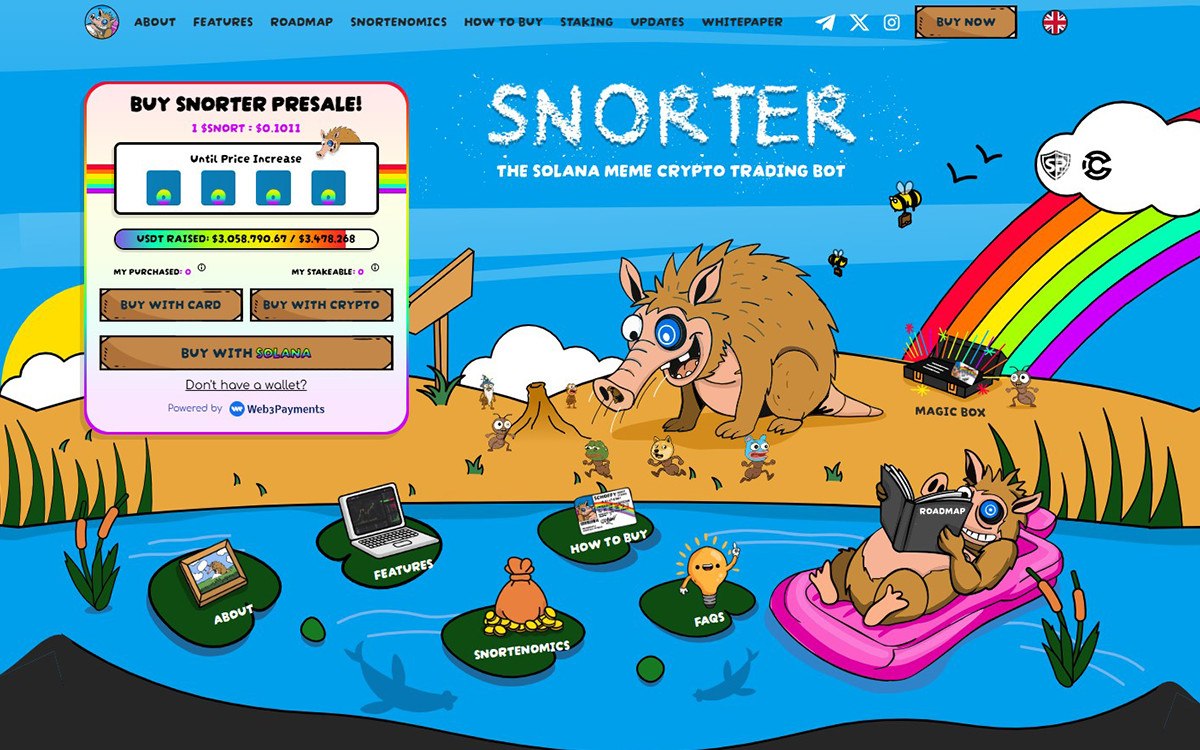 Το Snorter Bot ($SNORT) είναι ένα Telegram trading bot με δυνατότητες sniping, copy-trading και MEV protection. Το $SNORT χρησιμοποιείται για πρόσβαση σε premium λειτουργίες, μειωμένες προμήθειες και staking ανταμοιβές. Με υποστήριξη για Solana και Ethereum και μελλοντική επέκταση σε Base, Polygon και BNB, συνδυάζει το hype ενός meme coin με πραγματική χρησιμότητα στον χώρο του trading.