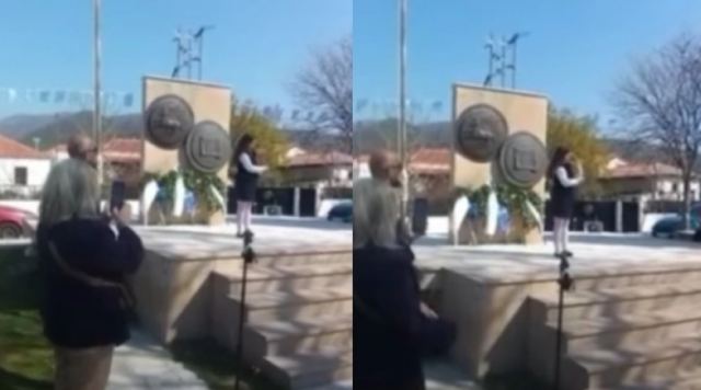 Η μαθήτρια χειροκροτήθηκε από τους μαθητές και γονείς που βρίσκονταν στο σχολείο για τη γιορτή της 25ης Μαρτίου.