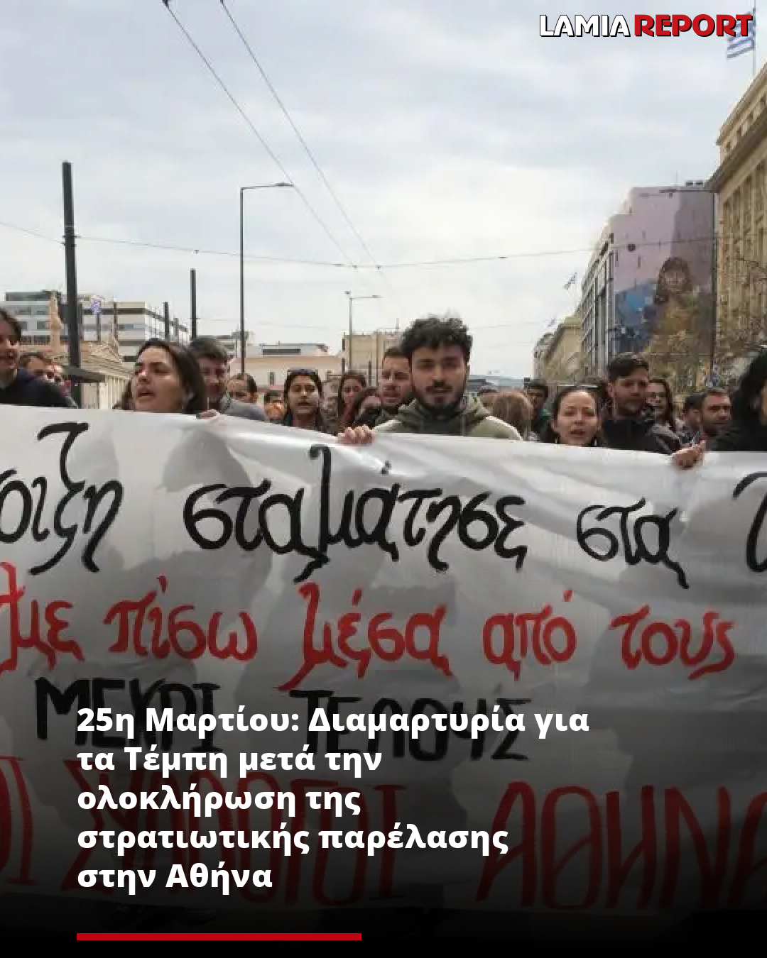 Διαμαρτυρία για τα Τέμπη πραγματοποίησαν μέλη φοιτητικών οργανώσεων, σύμφωνα με το newsit.gr, μετά την ολοκλήρωση της μεγάλης στρατιωτικής παρέλασης στην Αθήνα για την 25η Μαρτίου.