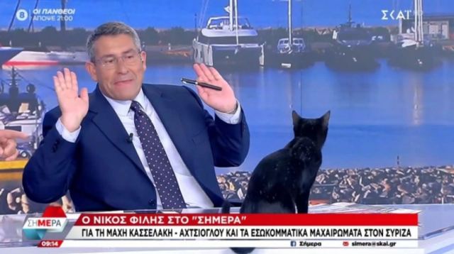 Μια μαύρη γάτα εισέβαλε στο στούντιο της εκπομπής «Σήμερα» του ΣΚΑΪ την ώρα που καλεσμένος ήταν ο Νίκος Φίλης.
