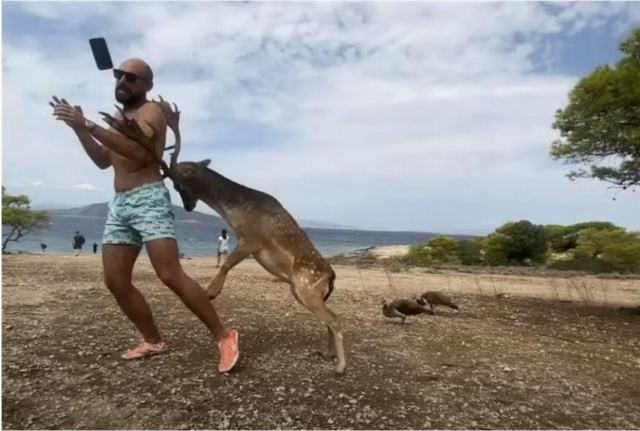Τουρίστας στην Αίγινα πήγε να βγάλει selfie με ελάφι και κατέληξε με σπασμένα πλευρά - Δείτε βίντεο