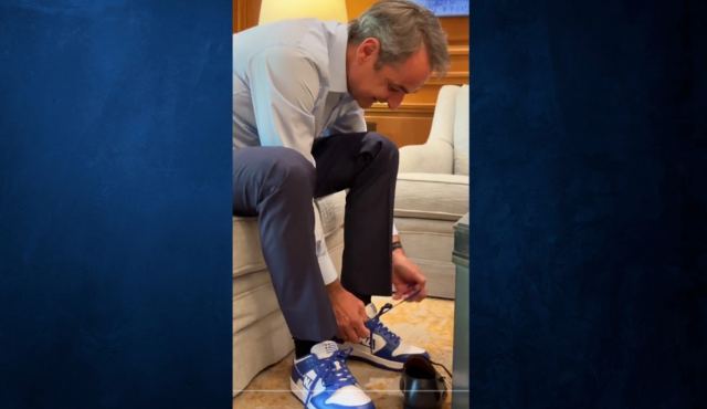 Ένα ζευγάρι αθλητικά παπούτσια «Νέα Δημοκρατία» απέκτησε ο Κυριάκος Μητσοτάκηςο οποίος έσπευσε να τα δοκιμάσει σε βίντεο που ανάρτησε στο TikTok.