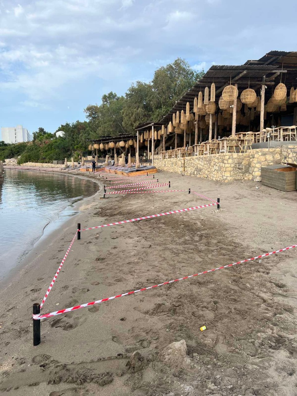 Η Κτηματική Υπηρεσία Δωδεκανήσων Α’ προχώρησε στην σφράγιση του χώρου όπου εντοπίστηκαν παράνομες κατασκευές με ομπρελοκαθίσματα τόσο στην παραλία όσο και εντός της θάλασσας. Επιπλέον απαγορεύτηκε η είσοδος εντός αυτού με σχετική σήμανση καθώς και η άσκηση οποιασδήποτε οικονομικής δραστηριότητας στον χώρο αυτό.